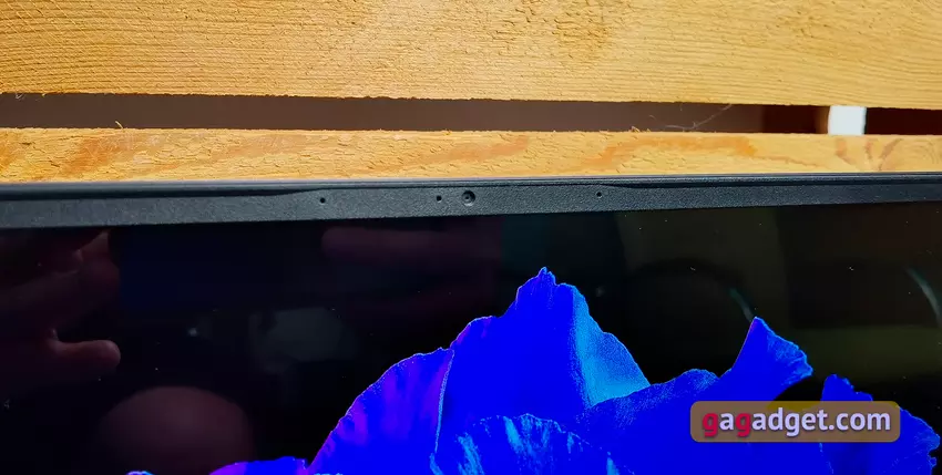 Oberhalb des Bildschirms befinden sich ganz normal zwei Mikrofone, eine FullHD-Webcam und eine Statusanzeige.