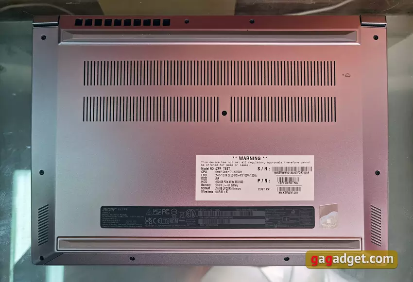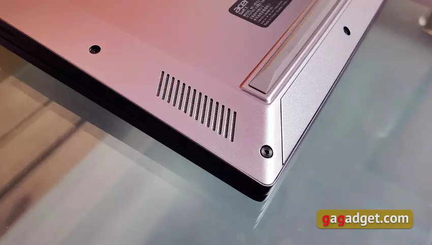 Acer Swift X 14 verwendet einen vierzelligen 76-Wh-Akku. Und hier machen sich die leistungsfähigen Komponenten (vor allem der Intel H-Series Prozessor) bemerkbar. Im normalen Büromodus mit einer konstanten Wi-Fi-Verbindung, der Nutzung eines Browsers, einfacher Fotobearbeitung in Photoshop und der Arbeit mit Dokumenten bei 50 % Helligkeit hält das Notebook etwas mehr als 5 Stunden durch. Wenn also die Autonomie das Hauptkriterium für die Wahl eines Laptops ist, dann sollten Sie sich Modelle mit bescheideneren Prozessoren der U-Serie genauer ansehen. Aber natürlich ist die Leistung dann auf einem ganz anderen Niveau.