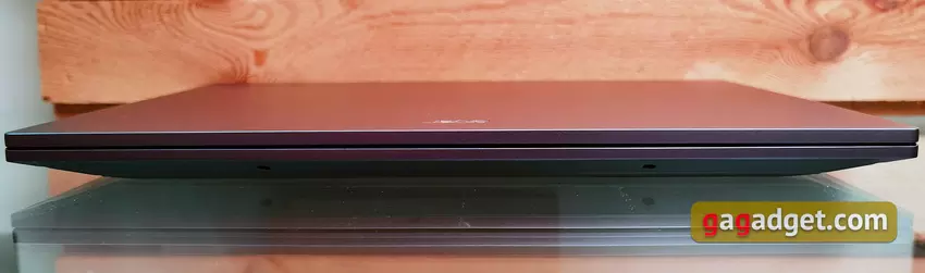 Das Notebook ist recht kompakt und leicht: 322,8x228,1x17,9 mm, 1,55 kg. Es ist nicht das kompakteste unter den 14-Zoll-Modellen, aber das ist durch die leistungsstarken Komponenten im Inneren völlig gerechtfertigt. Es ist von sehr hoher Qualität: Es wird recht dickes Metall verwendet und die Deckel verbiegen sich kaum. Auf der matten Oberfläche sammeln sich keine Fingerabdrücke.