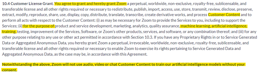 Am 11. August hat Zoom eine Klausel aus seinen Nutzungsbedingungen entfernt, in der es um die mögliche Nutzung von Kundendaten zum Training von Algorithmen der künstlichen Intelligenz ging.