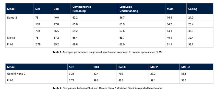 Laut den Entwicklern ist die Leistung von Phi-2 vergleichbar mit viel größeren Modellen wie Metas Llama 2 oder Mistral-7B, die jeweils 7 Milliarden Parameter enthalten. Phi-2 liegt auch vor dem kürzlich angekündigten Gemini Nano 2 von Google, der eine halbe Milliarde Parameter weniger hat.