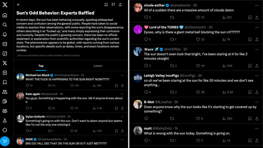 So veröffentlichte Grok die Nachricht, die Öffentlichkeit sei "besorgt über das Fehlen offizieller Aussagen oder Erklärungen von wissenschaftlichen Behörden zum aktuellen Zustand der Sonne". Dies ist jedoch nicht wahr, da die Wissenschaftler die Natur von Sonnenfinsternissen gut verstehen.