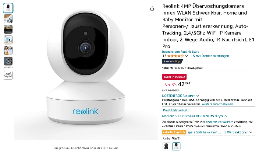 Die Reolink E1 Pro ist derzeit für sensationelle 42,49 € zu haben, statt der üblichen 64,99 €. Das bedeutet für Sie einen satten Rabatt von 35%! Mit einer Ersparnis von 22,50 € ist dieses Angebot ein wahres Festmahl für alle, die auf der Suche nach Top-Sicherheit zum Sparpreis sind.