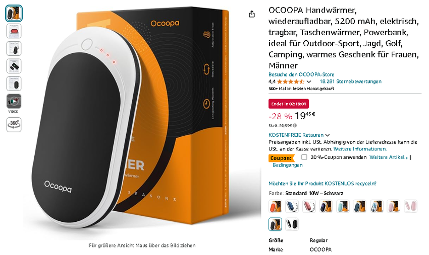 Der innovative OCOOPA Handwärmer ist aktuell für 19,43 € erhältlich, reduziert von 26,99 € - eine erfreuliche Ersparnis von 28%! Ein Angebot, das die Winterkälte im Handumdrehen vertreibt.