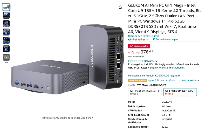 GEEKOM GT1 Mega Mini PC - Kompakte Kraftmaschine mit KI-Power