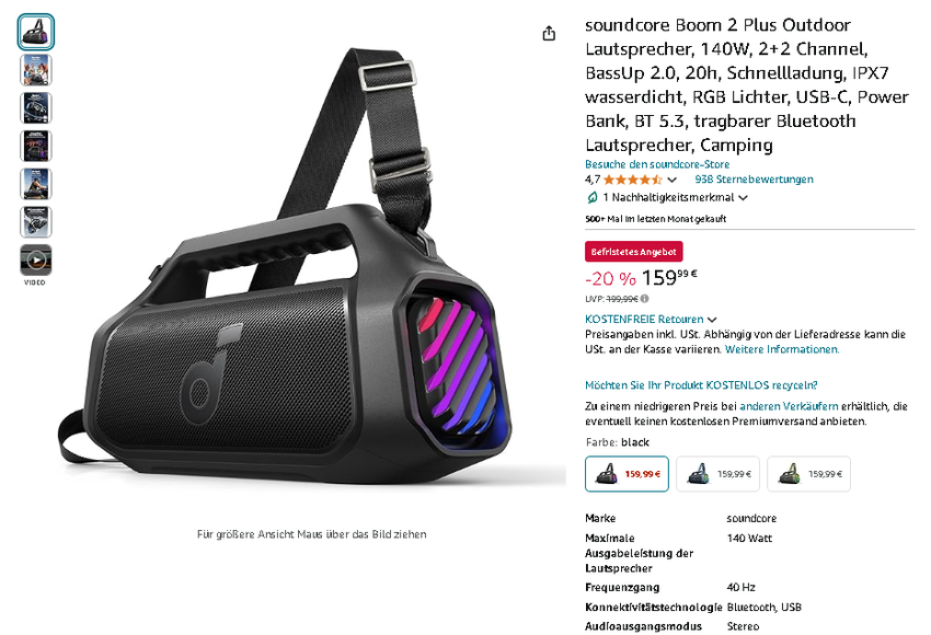 Der Boom 2 Plus ist aktuell für 159,99 € statt 199,99 € erhältlich - eine attraktive Ersparnis von 40 € (20%)!