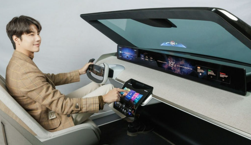 Die dritte Neuheit ist ein Display mit 34 Zoll Diagonale für Autos. Es wird mit P-OLED-Technologie hergestellt und ist der größte Bildschirm für Autos.