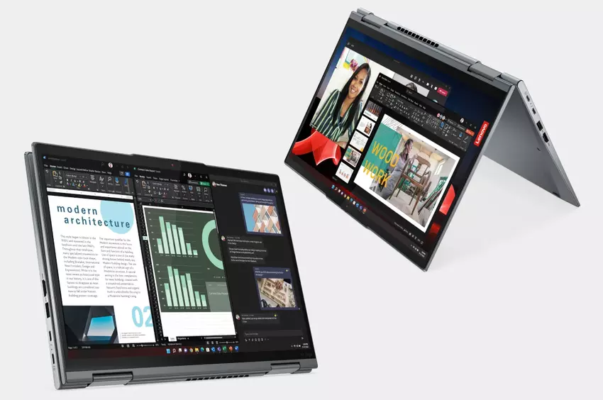 Wir beginnen mit dem Lenovo ThinkPad X1 Yoga Gen 8. Es verfügt über ein 14-Zoll-OLED-Panel mit Touch-Unterstützung und einer Auflösung von 2840 x 2400 Bildpunkten. Es gibt auch eine Option mit einem IPS-Bildschirm (1920 x 1200 Pixel). Die maximale Helligkeit beträgt jeweils 500 nit.