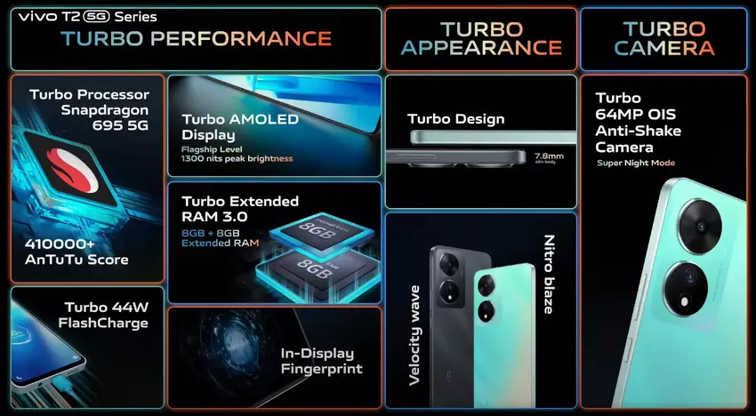 vivo T2 5G: 90Hz AMOLED-Display, Snapdragon 695-Chip, 64 MP-Kamera und 4.500-mAh-Akku mit 44W-Ladung für $230