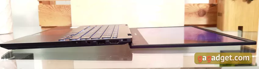 Die Abmessungen und das Layout der Tastatur sind absolut standardmäßig für ultraportable Modelle: ohne zusätzlichen Ziffernblock, mit reduzierten Pfeilen und einer Reihe von Funktionstasten, die mit der Entf-Taste endet (nicht mit dem Power-Button, wie es bei einigen Modellen der Fall ist). Home, End, PgUp und PgDn sind mit Pfeilen durch Fn dupliziert. Beide Umschalttasten sind lang, Enter ist "einstöckig". Im Allgemeinen wird es also ein Minimum an Zeit brauchen, um sich daran zu gewöhnen.