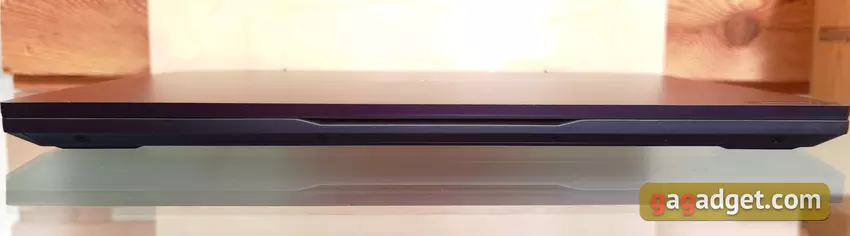 An der Vorderseite befindet sich eine für Ultrabooks übliche Aussparung, die das Anheben des Deckels erleichtert: