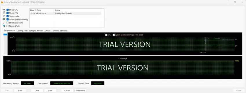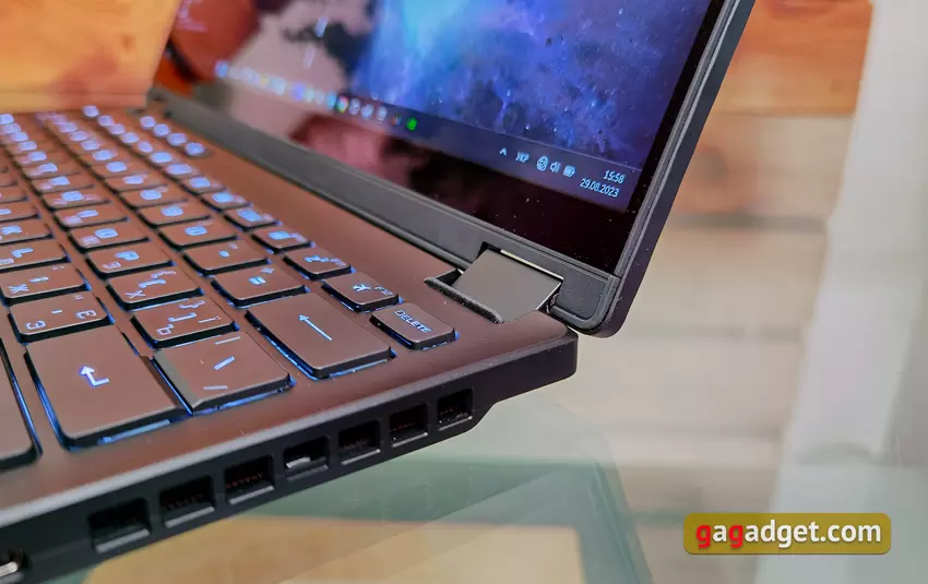 Das Kühlsystem umfasst zwei Arc Flow-Lüfter mit 84 Schaufeln, dünne Heatpipes und Radiatoren mit einer großen Wärmeabgabefläche. Flüssigmetall wird als thermische Schnittstelle für den Prozessor verwendet. Zusätzlich zu den drei Hauptlüftungszonen des Gehäuses wird die Kühlluft auch durch die Tastatur gezogen. Die Spezifikation des AMD Ryzen 9 7940HS Prozessors gibt eine maximale Betriebstemperatur von 100° an. Bei längerer maximaler Belastung kann sich der Prozessor bis auf 90° erwärmen, danach sinkt die Temperatur auf etwa 85°. Der Prozessor verliert nicht an Leistung, und das Notebook arbeitet stabil. Das Geräusch der Lüfter ist unter Last deutlich hörbar. Es ist aber viel leiser als bei großen Gaming-Modellen. Bei minimaler Last schalten sich die Lüfter ab und das Notebook ist absolut leise.