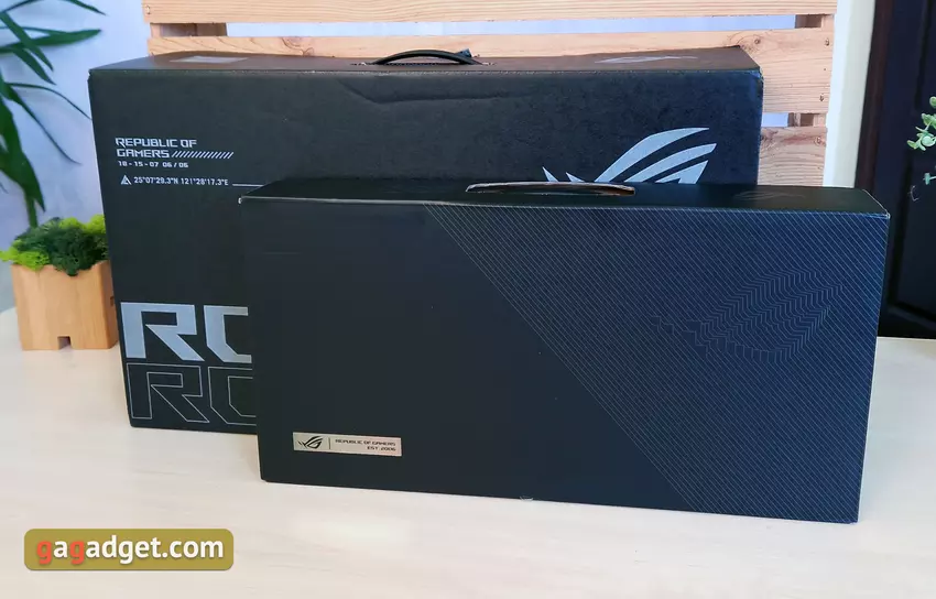 ASUS ROG Flow Z13 (2022) kam zu uns in der höchstmöglichen Konfiguration und Konfiguration, mit einer externen Grafikkarte ROG XG Mobile AMD Radeon RX 6850M XT. Das gesamte Kit wird in zwei separaten Kartons geliefert (ROG XG Mobile wird separat in verschiedenen Varianten verkauft). Das ROG Flow Z13 ist in einer großen schwarzen Box verpackt, in der sich zwei kleinere silberne befinden. Das Set umfasst das Tablet selbst, eine abnehmbare Tastatur mit magnetisch befestigtem Touchpad, ein kompaktes 100-W-Typ-C-Netzteil, ein abnehmbares Netzkabel, eine kabelgebundene ASUS ROG Impact-Maus, einen Markenstift, Dokumentation und zwei Abdeckungen mit gummierter Oberfläche Oberfläche und eine weiche Dichtung zum Schutz vor Schlägen.