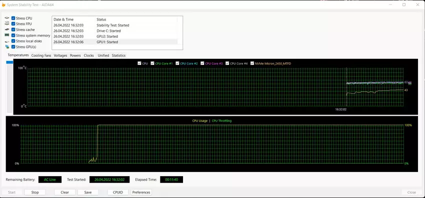 Das Kühlsystem umfasst zwei Arc-Flow-Lüfter, eine Verdunstungskammer und Radiatoren mit dünnen 0,15-mm-Lamellen. Und flüssiges Metall wird als thermische Schnittstelle verwendet, wie in allen Top-Gaming-Lösungen von ASUS in den letzten Jahren. Das ROG XG Mobile verwendet einen Kühlkörper, eine Dampfkammer und einen einzelnen Lüfter. SO arbeitet sehr effizient. Im Produktivbetrieb erwärmen sich die Innenseiten nicht mehr als bis zu 65°. Dementsprechend werden keine Leistungseinbrüche beobachtet. Strukturell wird heiße Luft nach oben geblasen, sodass es zu keinen Beschwerden kommen kann, nur die hintere Abdeckung des Tablets erwärmt sich. ASUS ROG Flow Z13 zusammen mit ROG XG Mobile sind nicht zu laut. Ja, die Arbeit von CO ist hörbar, aber der Geräuschpegel ist vergleichbar oder sogar etwas niedriger als bei den üblichen Gaming-Laptops. Gleichzeitig wechselt das Tablet bei minimaler Belastung in den passiven Kühlmodus.