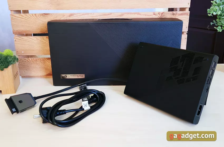 ROG XG Mobile ist in einer kleineren Blackbox verpackt. Das Set ist bescheidener: die externe Grafikkarte selbst und das Netzkabel.