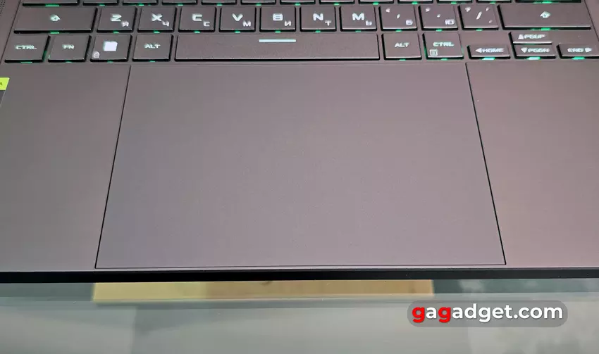 Das Touchpad des Laptops ist eine gesonderte Erwähnung wert. Es ist riesig, misst 150,3 x 98,8 mm und hat eine Glasbeschichtung. Die Empfindlichkeit und die Positionierungsgenauigkeit sind ausgezeichnet. Natürlich kann man mit dem Touchpad nur rundenbasierte Strategien oder RPGs spielen. Aber für alles andere als Spiele ist das Touchpad absolut ausreichend.