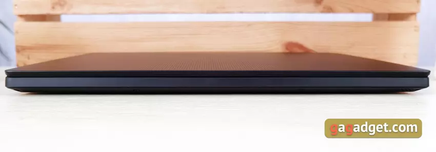 An der Vorderseite gibt es nichts Interessantes. Aber die Form des Deckels ist so gestaltet, dass das Notebook leicht zu öffnen ist.
