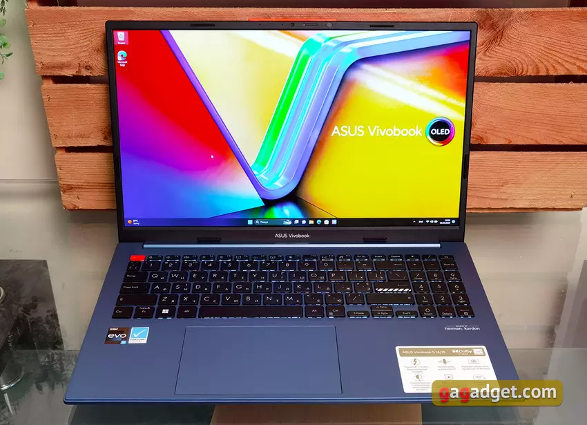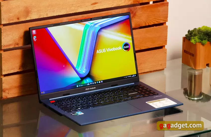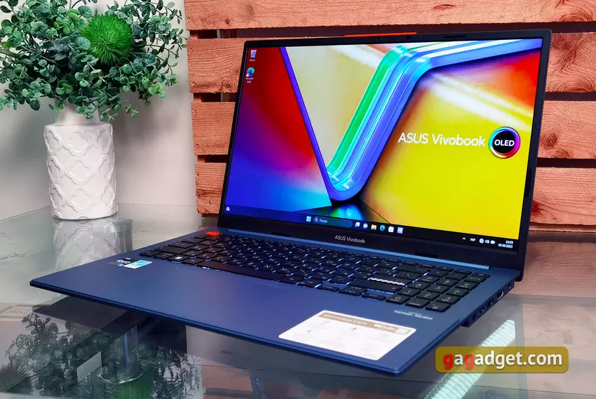 Das ASUS Vivobook S 15 OLED wird von der neuesten 13. Generation der Intel Raptor Lake H-Series Prozessoren angetrieben. In unserer Konfiguration haben wir das Spitzenmodell, den Intel Core i9-13900H. Er wird mit dem Intel 7-Prozess hergestellt und verfügt über 14 Kerne. 6 produktive Kerne mit einer Taktrate von 2,6 bis 5,4 GHz und 8 energieeffiziente Kerne mit einer Taktrate von 1,9 bis 4,1 GHz. Es werden bis zu 20 Threads unterstützt und der Cache beträgt 24 MB. Der TDP-Wert liegt bei 45 Watt. Integriert ist eine Intel Iris Xe Grafik mit einer Frequenz von bis zu 1,5 GHz. Neben der integrierten Lösung gibt es aber auch eine diskrete Grafikkarte. Nämlich die Intel Arc A350M. Intels Grafikkarten sind noch kaum verbreitet, daher waren wir besonders daran interessiert, die Fähigkeiten der Intel Arc kennen zu lernen. Das Unternehmen behauptet, dass das Basismodell der Linie (die Intel Arc A350M) die doppelte Leistung im Vergleich zu integrierten Lösungen bietet. Die Grafikkarte basiert auf dem 6nm Intel ACM-G11 Grafikprozessor. Er umfasst 96 universelle Kerne, 48 Texturmodule, 6 RT-Kerne und 96 Tensor-Kerne. Der Videospeicher ist 4 GB GDDR6 groß. Die Grundfrequenz beträgt 1150 MHz, im Boost-Modus bis zu 2200 MHz. Natürlich handelt es sich hierbei nicht um eine Gaming-Grafikkarte, die mit aktuellen NVIDIA-Lösungen konkurrieren kann, aber ihre Leistung reicht aus, um auch die anspruchsvollsten modernen Spiele zu spielen. Der Arbeitsspeicher beträgt 16 GB LPDDR5-4800, der im Dual-Channel-Modus arbeitet. Es gibt kein Upgrade sowie Versionen mit 32 GB RAM. Drahtlose Schnittstellen: Bluetooth 5.2 und schnelles Wi-Fi 6E (802.11ax) (Dualband) 2x2.