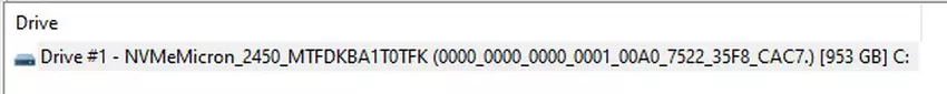 Bei der Festplatte handelt es sich um eine Micron M.2 SSD, Modell 2450 (MTFDKBA1T0TFK) mit einer Kapazität von 1 TB und einer PCIe 4.0-Schnittstelle.