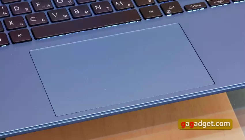 Das Touchpad ist zwar nicht aus Glas, hat aber mit 129,7x82,1 mm recht große Abmessungen, eine angenehme hydrophobe Beschichtung und eine gute Empfindlichkeit. Es gab keine Beschwerden über seine Leistung, es ist völlig ausreichend, um mit Dokumenten und einem Browser zu arbeiten.