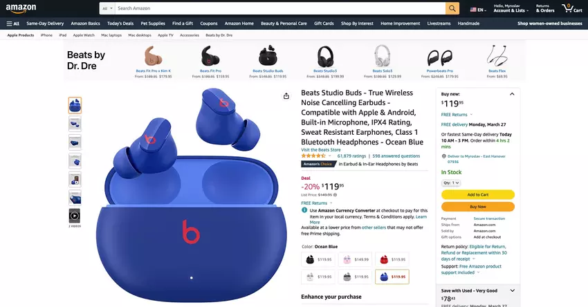 $30 Rabatt: Beats Studio Buds mit ANC, MediaTek-Chip und bis zu 24 Stunden Akkulaufzeit im Angebot bei Amazon für $119