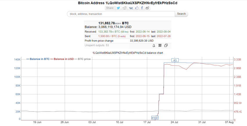 Er ist nun einer der drei größten Besitzer der Kryptowährung Bitcoin weltweit. Nach mehreren Transaktionen ist die Anzahl der Token auf 131.882,78 BTCgesunken. Dies entspricht etwa 0,7 % aller Bitcoins im Umlauf.