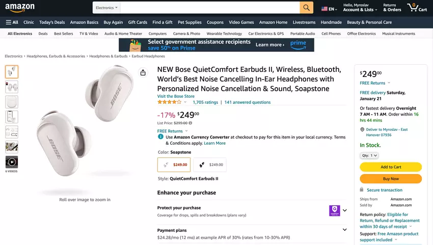 Bose QuietComfort Earbuds II mit ANC, IPX4-Schutz und bis zu 24 Stunden Akkulaufzeit sind auf Amazon für $50 Rabatt erhältlich