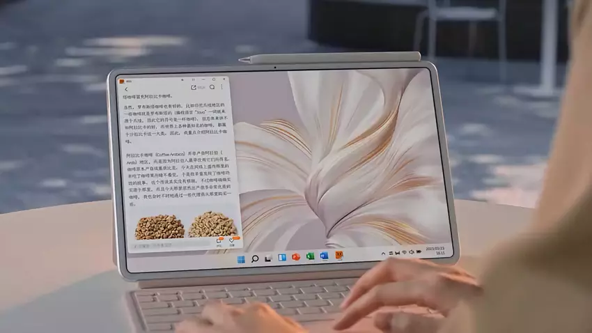 Huawei enthüllt das Design des MateBook E 2023 vor der Ankündigung: 2-in-1-Gerät mit dünnen Rändern, Tastatur, Stift und Windows 11 an Bord
