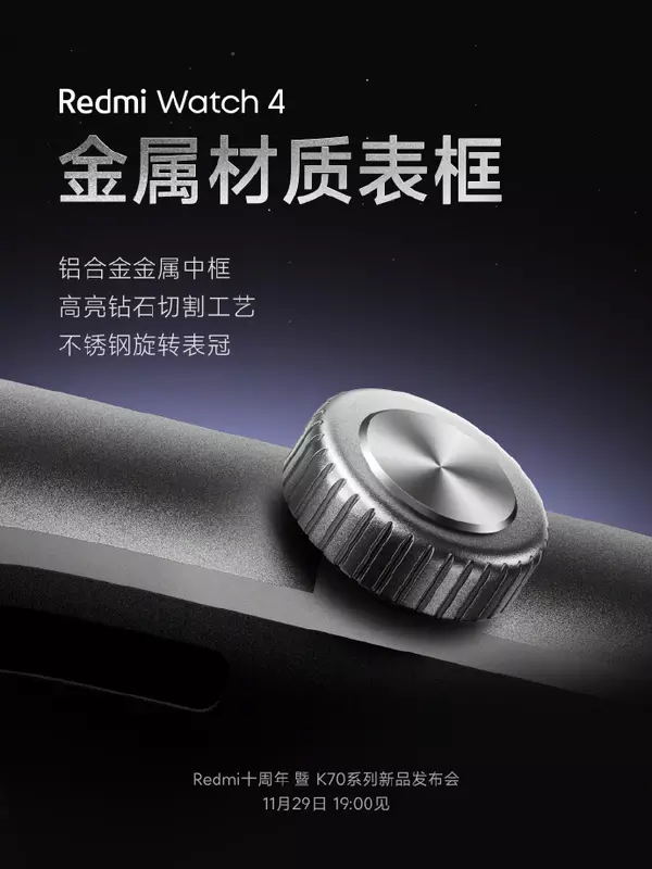 Neulich kündigte Xiaomi an, dass es bei der Präsentation am 29. November nicht nur die Redmi K70-Smartphones, sondern auch mehrere andere neue Produkte vorstellen wird: Die Laptops Redmi Book 14 und Redmi Book 16, die kabellosen Kopfhörer Redmi Buds 5 Pro und die Smartwatches Redmi Watch 4. Neue Werbeposter haben weitere Details zu letzteren enthüllt.