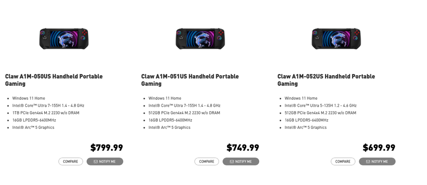Ab 699 Dollar: MSI hat den Preis für die Claw A1M Spielekonsole bekannt gegeben