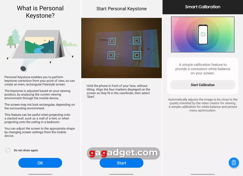 Eine der interessanten zusätzlichen Funktionen ist der Ambient-Modus, aber wir haben einen separaten Artikel auf unserer Website, wo Sie darüber lesen können. Daher ist es besser, sich in diesem Test auf die neue Funktion dieses Modells zu konzentrieren - die Panoramabildfunktion zusammen mit dem zweiten Projektor. Damit können Sie Bilder mit einer Diagonale von bis zu 160 Zoll erzeugen! Und das ist eine gewisse technische Herausforderung, die ich persönlich gerne erforschen wollte.