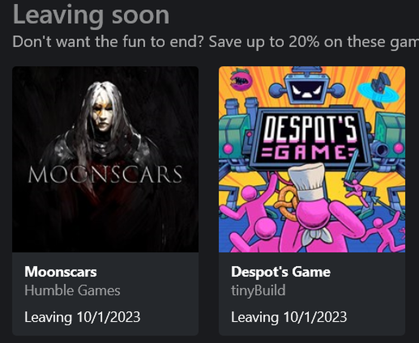 Game Pass hat die Rubrik "Bald weg" aktualisiert, in der 8 Spiele aufgelistet sind, die das Abonnement am 1. Oktober für immer verlassen werden.