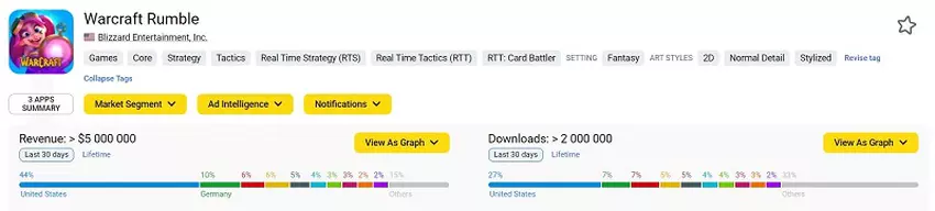 Laut denStatistiken des Dienstes AppMagic wurde Warcraft Rumble seit der Veröffentlichung des Spiels am 2. November von mehr als zwei Millionen Nutzern von Mobilgeräten mit iOS und Android installiert.