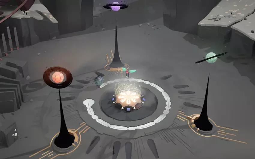 Du kannst die Kugeln an zwei Stellen platzieren: Portale, die es dir ermöglichen, in eine der 4 Welten zu gelangen, und spezielle Halterungen, um den Mechanismus zu aktivieren und durch ein bestimmtes Gebiet zu gehen oder die Kugel zu verlassen, um sie durch eine andere zu ersetzen.