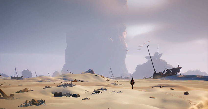 Zu Beginn des Spiels sehen wir eine Wüste mit Dutzenden von kaputten Schiffen, die ihr Ziel nicht erreicht haben. Es ist nicht schwer zu erraten, dass es eine massive Abreise gegeben hat. Und dann erscheint ein unbekannter Reisender im Bild, der auf einen geheimnisvollen Turm zusteuert. Dieser Reisende ist die Hauptfigur, aber wie er heißt, wer er ist, warum er hier ist und was er im Turm vergessen hat, sind Fragen, auf die Sie selbst Antworten finden müssen.