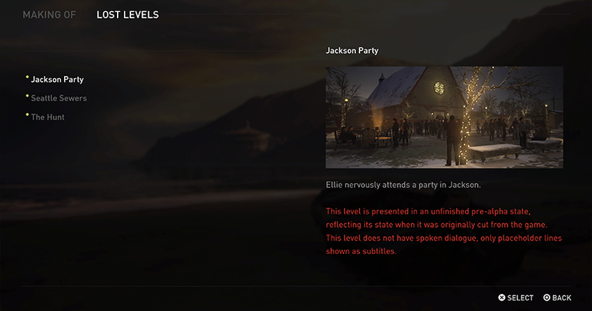 Vor jedem Level wird Neil Druckmann, Co-Präsident und Game Director von Naughty Dog, kurz erklären, was Sie erwartet. Für jeden Schauplatz benötigt man 10 Minuten, und überall gibt es Kommentare der Entwickler, die man sich anhören kann, um zu verstehen, wie bestimmte Entscheidungen getroffen wurden.
