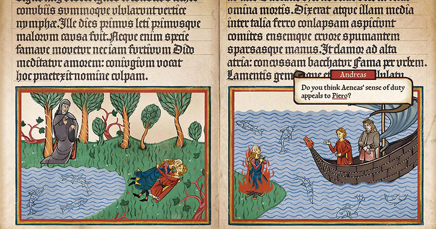 - Das Spiel ist im Stil illustrierter Manuskripte des 16. Jahrhunderts gestaltet