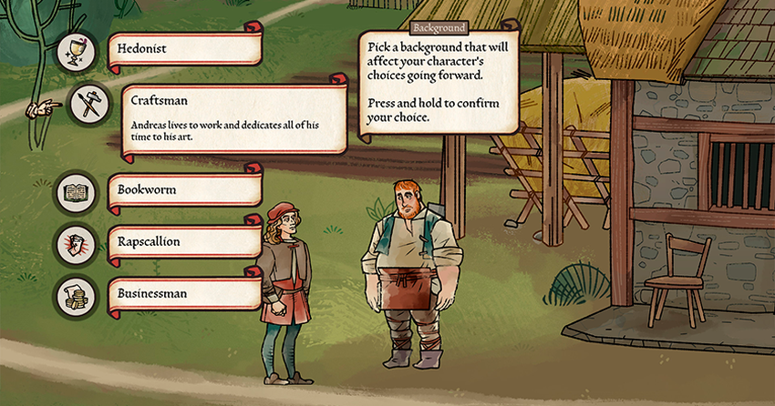 Erstens musst du zu Beginn bestimmte Eigenschaften von Andrés auswählen: wohin er gereist ist, was er studiert hat und welche starken Fähigkeiten er hat (z. B. öffentlich sprechen). Auf diese Weise können Sie der Figur bestimmte Eigenschaften verleihen, die Ihren Rundgang von anderen unterscheiden (wenn auch nur minimal).