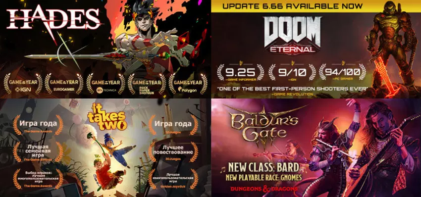 Valve war jedoch nicht allzu streng und hat eine Ausnahme gemacht. Entwickler können mit dem Cover in Steam über größere Updates (zusätzliche Inhalte, ein saisonales Ereignis usw.) sprechen. Aber es muss unbedingt ein Ersatzbild sein, das nicht länger als einen Monat auf der Seite bleibt. Der Text auf dem Cover muss mindestens in die vom Spiel unterstützten Sprachen übersetzt sein.
