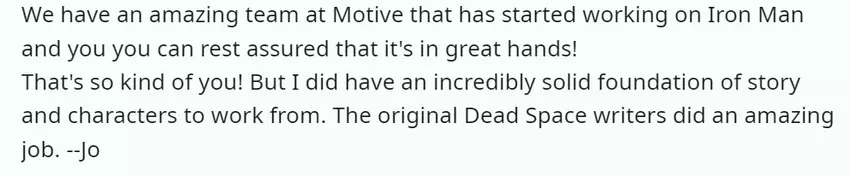 Auf Fragen von Reddit-Nutzern antworteten die Spieleentwickler von EA Motive, dass ein Spiel, das auf den Iron Man-Comics basiert, bereits in Produktion ist.