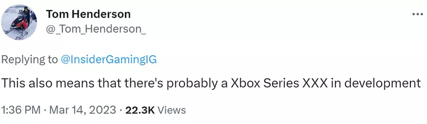 Tom Henderson deutet an, dass Microsoft auch an einer Konsole der mittleren Generation arbeitet, die er scherzhaft "Xbox Series XXX" nannte.