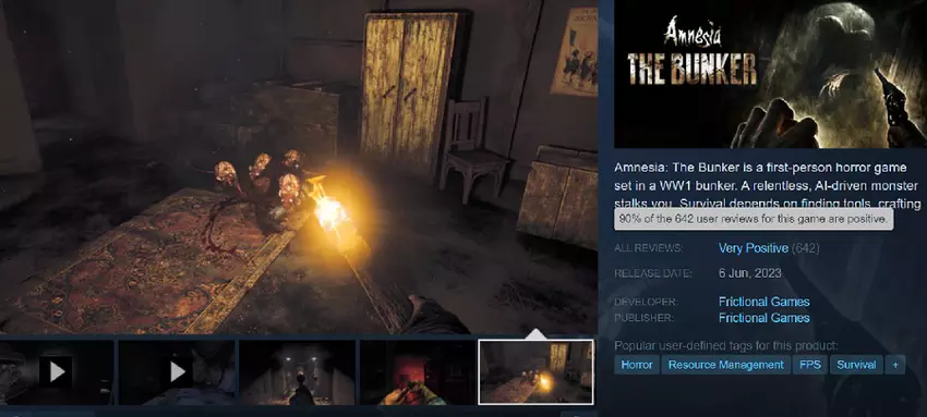Die Steam-Nutzer haben den neuen Teil von Amnesia gelobt, wie die "sehr positive" Bewertung in der Rezensionsspalte beweist. Insgesamt erhielt das Spiel 90 % positives Feedback von den Spielern, denen die düstere Atmosphäre von The Bunker, das dynamische und intensive Gameplay, die interessanten Mechaniken und die fesselnde Geschichte gefielen.