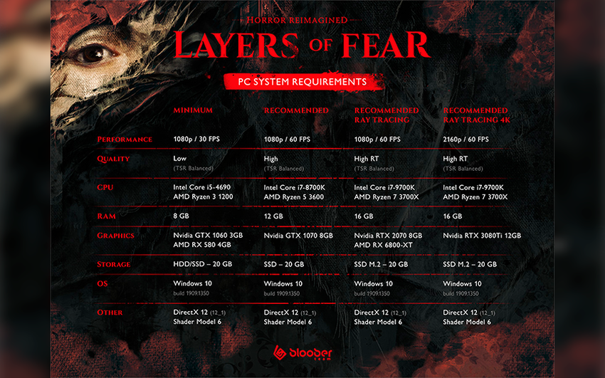 Ich habe Layers of Fear zunächst auf Steam gespielt, als die Demoversion veröffentlicht wurde. Auf einem Lenovo IdeaPad Gaming 3 Gaming-Laptop (NVIDIA GeForce GTX 1650 + AMD Ryzen 5 4800H) mit niedrigen Grafikeinstellungen und aktiviertem Intel XeSS lief das Spiel stabil mit 60 Bildern pro Sekunde, und die Grafik war in Ordnung, wenn man nicht mit einer Lupe auf den Bildschirm schaute. Das Spiel unterstützt auch DLSS, so dass Gamer mit den richtigen NVIDIA-Grafikkarten keine Probleme mit dem Spiel haben sollten. Was AMD FSR betrifft, so haben die Entwickler diese Technologie noch nicht erwähnt, aber sie könnte später erscheinen. Ein PC der mittleren Preisklasse sollte jedoch für ein komfortables Spiel ausreichen.