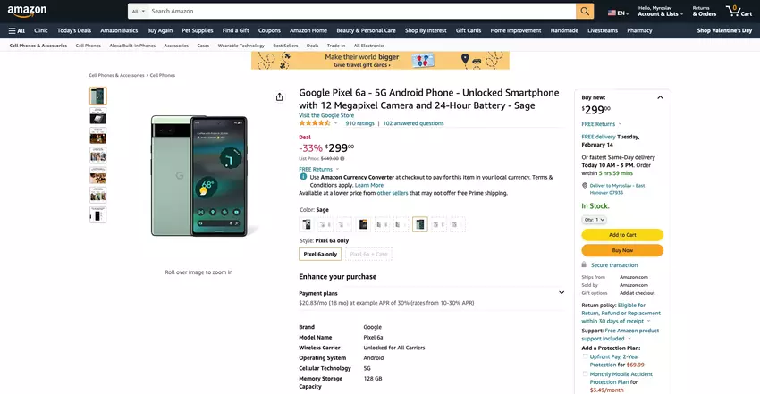 Das Google Pixel 6a ist erneut im Preis gesunken: Das Smartphone kann auf Amazon für 300 Dollar (150 Dollar Rabatt) erworben werden.
