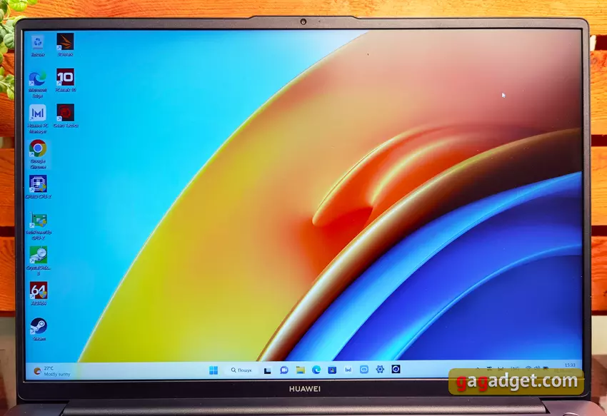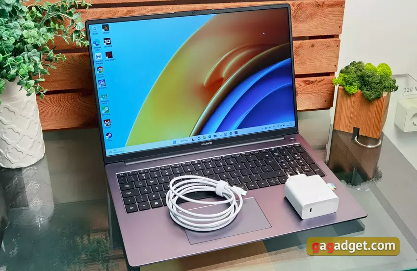 Das Huawei MateBook D 16 hat einen 60Wg Akku. Trotz eines recht leistungsstarken Prozessors hält das Notebook im Alltag etwas weniger als einen Arbeitstag durch. Bei einer Helligkeit von 50 %, einer Wi-Fi-Verbindung, der Arbeit mit einem Browser, Dokumenten und Photoshop, sind es etwas mehr als 7 Stunden.