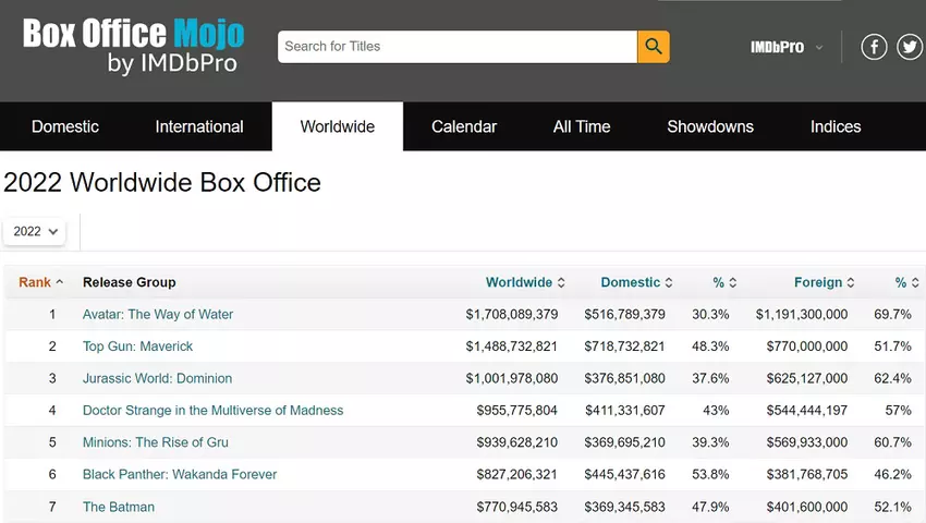 Der Film, der erst am 16. Dezember in die Kinos kam, wurde in kürzester Zeit zum umsatzstärksten Film des Jahres 2022 und übertraf damit Hits wie Top Gun: Maverick und Jurassic World Dominion.