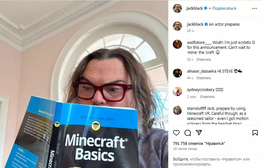 Black veröffentlichte einen Instagram-Post, auf dem er ein Foto von sich beim Lesen des Buches "Minecraft Basics" mit der Bildunterschrift "Actor getting ready" teilte.