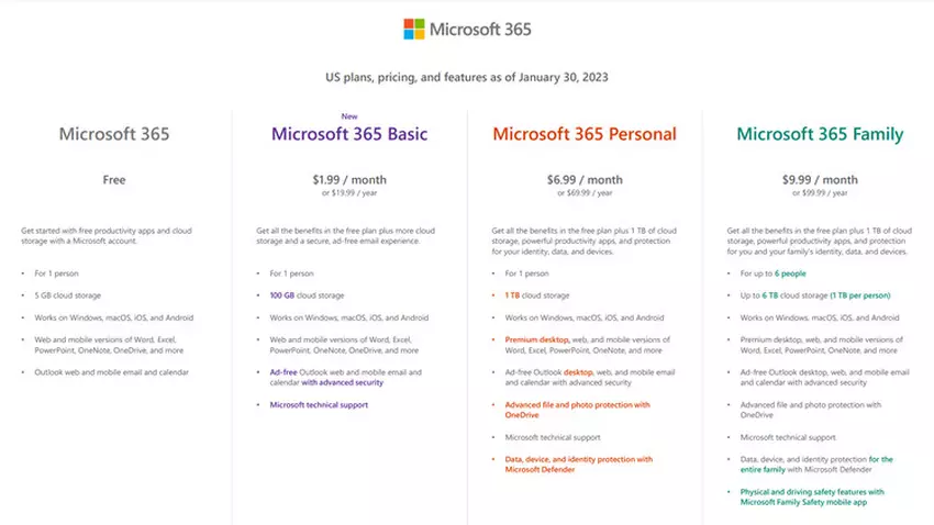 Microsoft hat ein neues Paket für seine Microsoft 365-Abonnements eingeführt - Microsoft 365 Basic. Für 1,99 $ erhalten Sie 100 GB OneDrive-Speicher mit einigen zusätzlichen Funktionen, die zwischen der kostenlosen Option und dem persönlichen Abonnement für 6,99 $/Monat liegen.