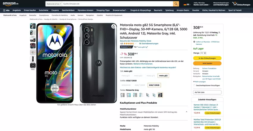 Die gg-Redaktion hat ein weiteres gutes Angebot für Sie auf Amazon gefunden - das Motorola Moto G82 5G Smartphone für check price on amazon.