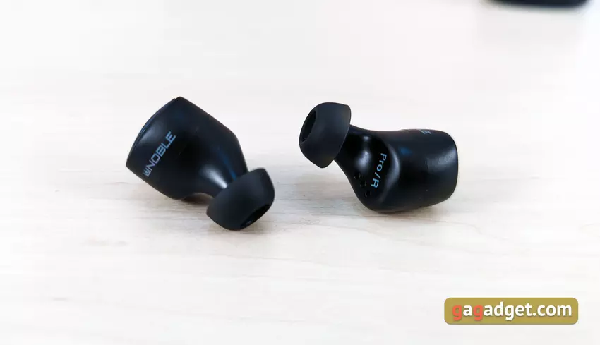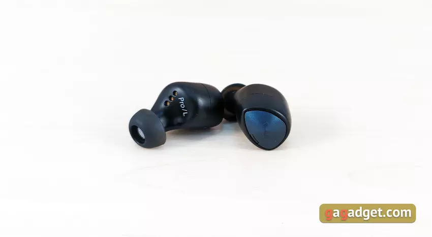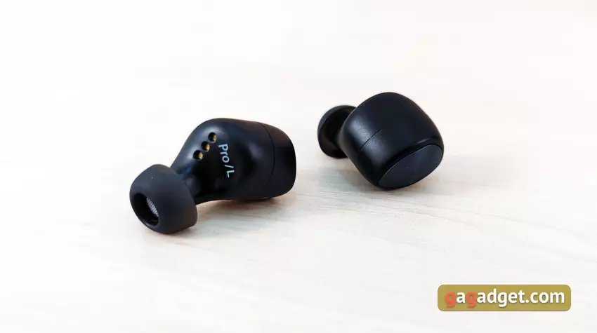 Die Kopfhörer sind leicht und haben eine sehr gute Form. Sie sitzen sehr tief im Gehörgang, sind gut fixiert und streben auch beim Laufen nicht danach, aus den Ohren zu fliegen. Allerdings musste ich anfangs ein wenig experimentieren, um die für mich optimale Position mit besserer Schalldämmung zu finden. Übrigens ist die passive Schalldämmung bei der Wahl der richtigen Polster und des richtigen Sitzes hervorragend. Aber für diejenigen, die sich nicht von der Außenwelt isolieren wollen, gibt es einen Hear-Through-Transparenzmodus. Der Benutzer hört den Ton von Mikrofonen, um zu hören, was um ihn herum passiert. Der einzige wichtige Punkt, den man über die Benutzerfreundlichkeit wissen sollte, ist, dass die Ohrstöpsel ziemlich weit über die Ohren hinausragen. Es besteht die Möglichkeit, dass es im Winter nicht sehr bequem ist, eine Mütze zu tragen.